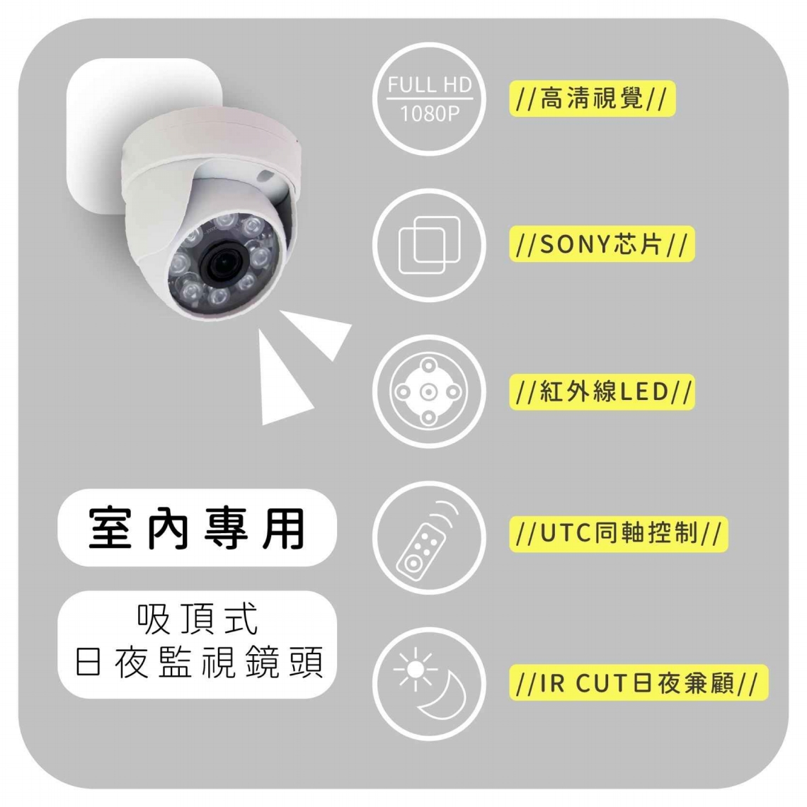 AHD 1080P兩百萬室內紅外線半球攝影機